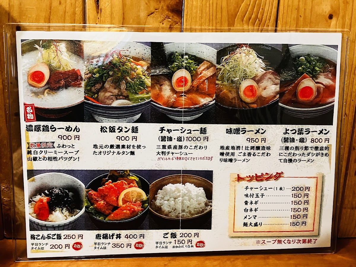 Introducing Yotsuba, a culinary gem located in Matsusaka, Japan, renowned for its exquisite chicken ramen. Nestled just a five-minute drive from Matsusaka Station, this eatery captivates with its rich, creamy chicken soup that strikes the perfect balance between luxurious and light. With prices offering exceptional value, customers rave about the 濃厚鶏ラーメン (Rich Chicken Ramen) priced at 900 yen, praised for its depth of flavor and tender pork cartilage.